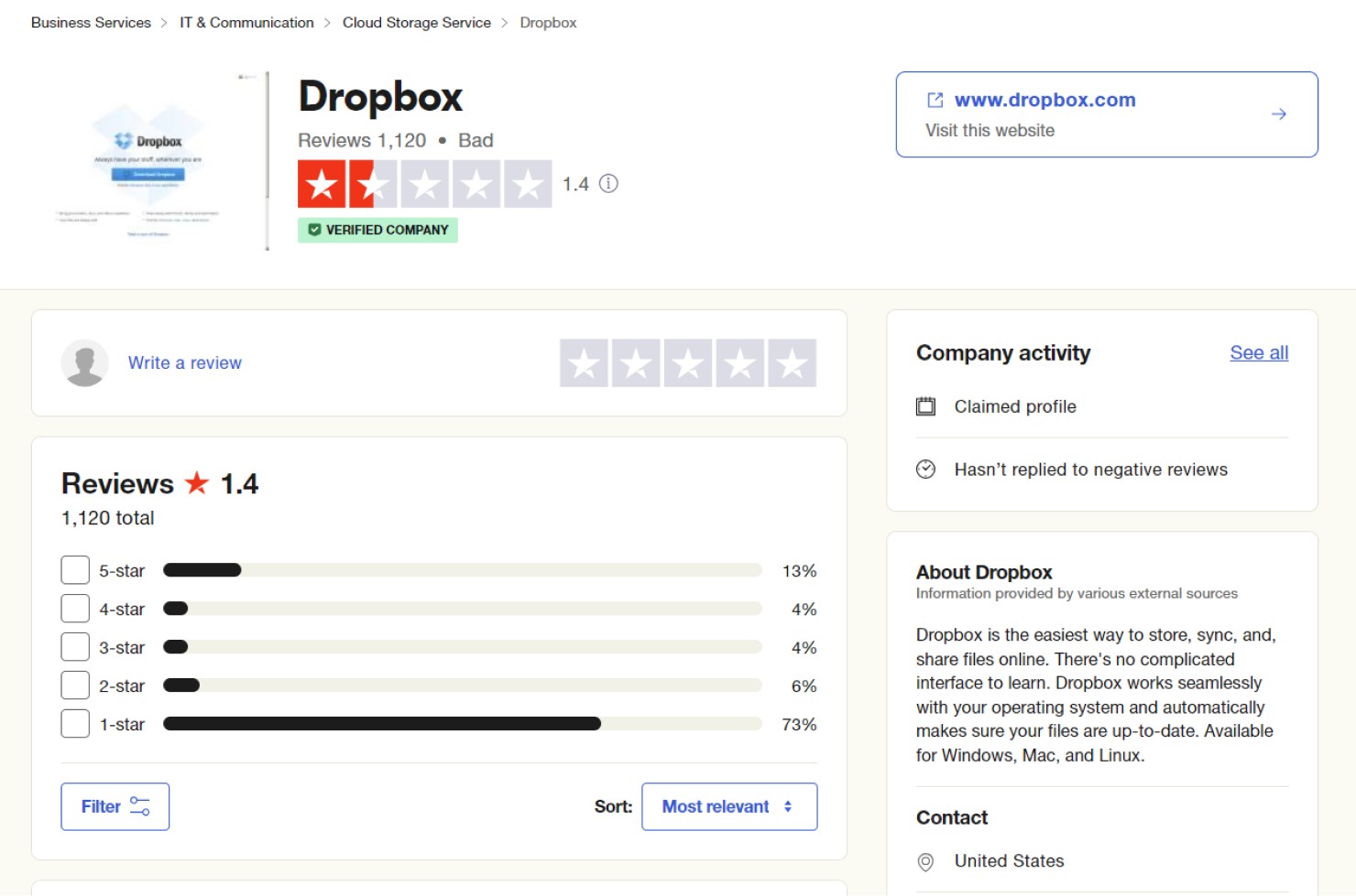 Websites like G2, SourceForge, and TrustPilot are review platforms for tech products, like Yelp for nerds. If you search “Dropbox reviews”, for example, you'll likely see TrustPilot show up somewhere on the first page.