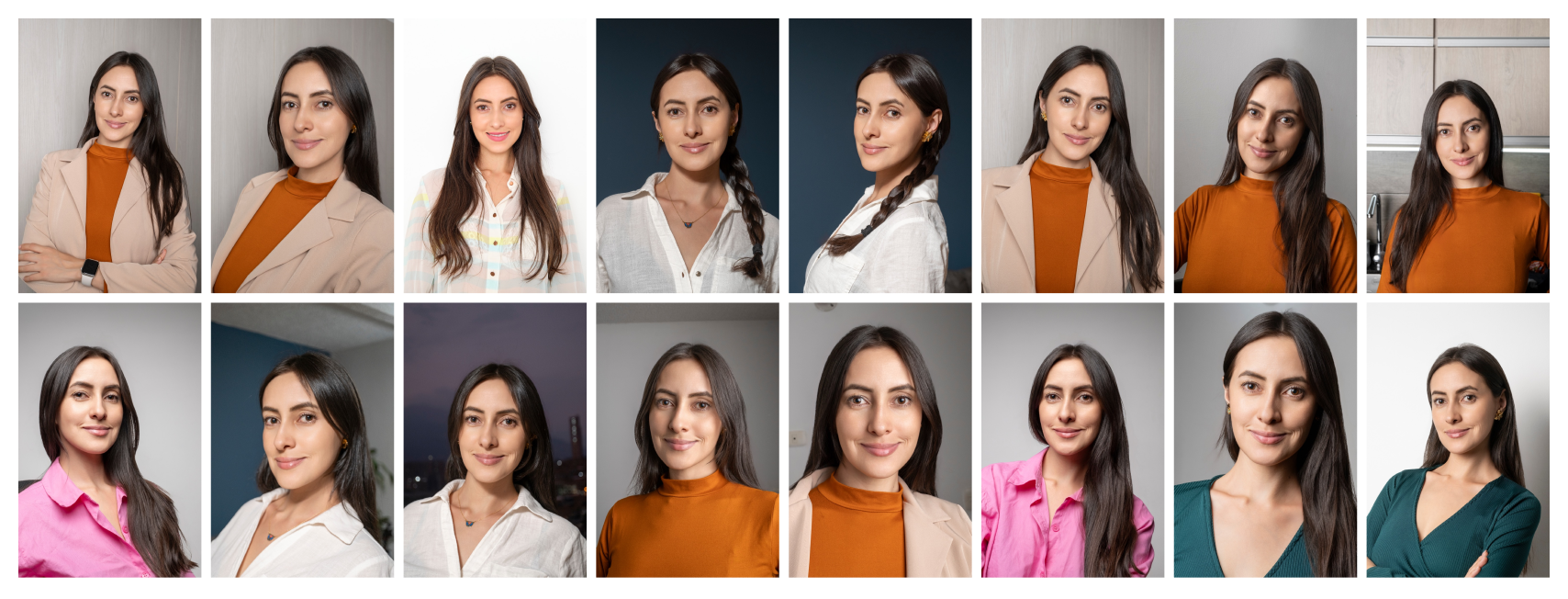 We used the following input photos, keeping in mind that the quality of your input photos has a direct result on the quality of the AI headshots you get back.