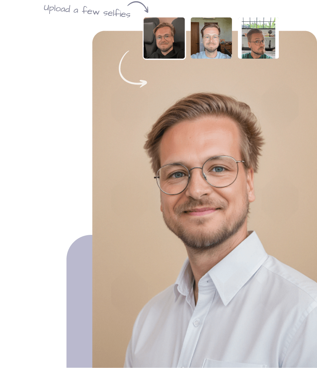 The photos you upload are used to train our AI model so it can create realistic AI headshots. These input photos are deleted within 7 days, but you can instantly delete them at any time with our ‘Delete’ button.